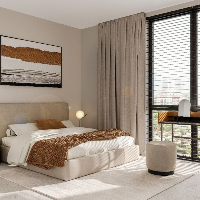 The JVC area has a prime location, allowing V1TER residents to quickly reach key points in Dubai. Dubai Marina, Marina Mall, Emirates Mall and Palm Jumeirah are just 15 minutes away by car. Business Bay, Downtown, Burj Khalifa and Dubai Mall are approximately 25 minutes away, while Dubai International Airport is 30 minutes away. Within walking distance are the Circle Mall shopping center, schools, kindergartens, medical institutions, cafes, restaurants and retail outlets.